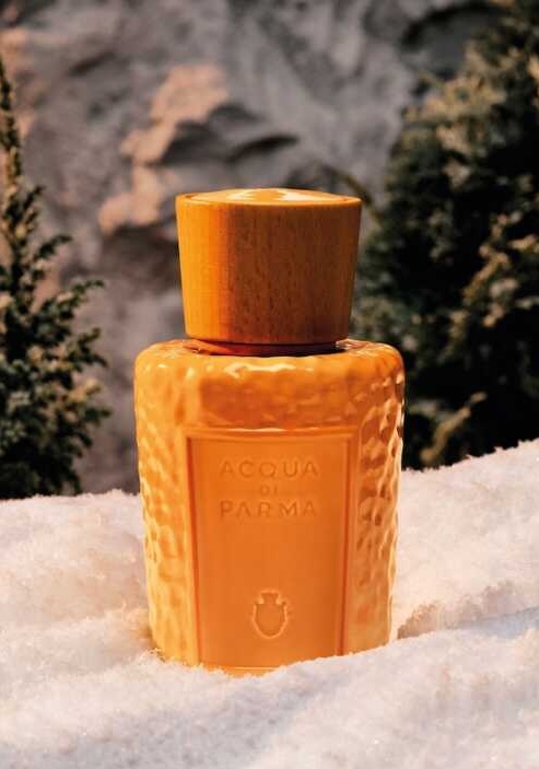 La bougie Chapeau ! se présente comme un objet design ingénieux, réinventant le style Art déco d’Acqua di Parma. Tant dans sa forme que dans sa fonction. Elle s’inspire de la silhouette élégante d’un chapeau et se distingue par un capuchon en porcelaine laquée de couleur terre cuite. Le flacon renferme le parfum exclusif de saison, Buongiorno Cortina. Une création empreinte d’élégance et de douceur hivernale. 330ml : 750€.