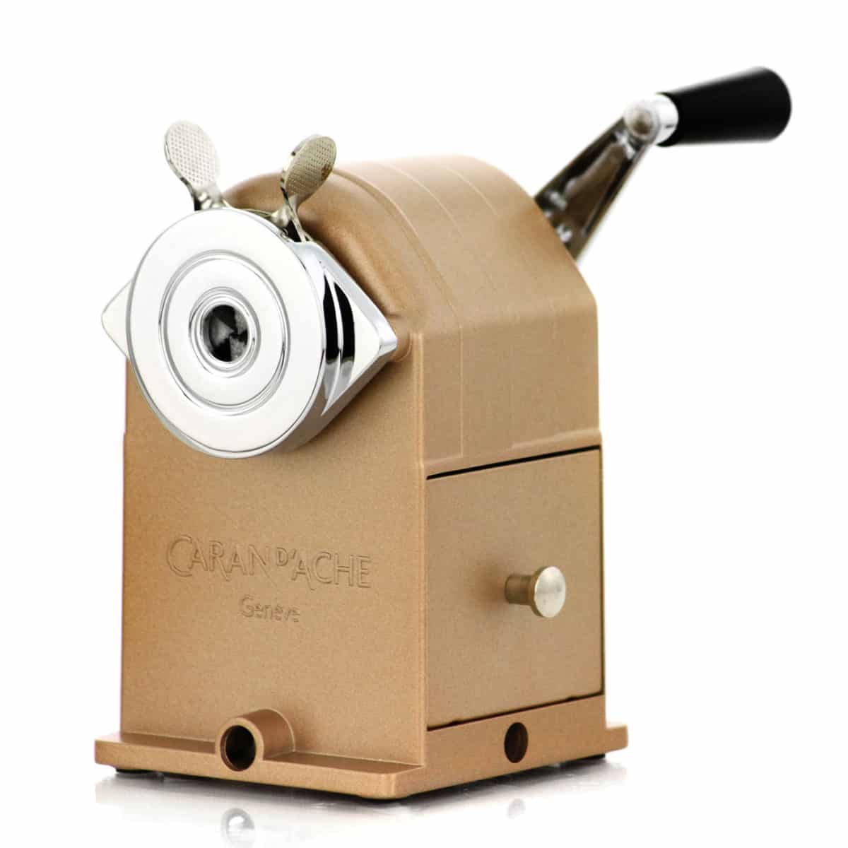 Caran d’Ache accompagne l’arrivée de l’automne sous le signe de l’écriture. Deux éléments phares de la marque célèbrent les couleurs de cette saison, ainsi que le changement et le temps qui passe. La machine à tailler les crayons en métal brut rosé Matterhorn ravira les collectionneurs avec son allure vintage précieuse.
