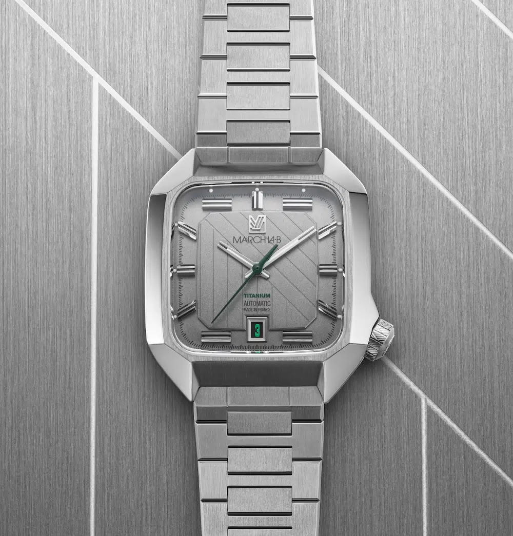 La cinquième édition du « Millésime Mars 2024 » est de sortie. Entièrement carénée de cette couleur identitaire propre à ce matériau anti-corrosion, se dote d’une haute résistance mécanique. Cette montre se présente dans un titane de grade 5. Traité anti-traces, car plus résistant aux rayures et beaucoup plus léger que l’acier. 91 grammes au total, avec un bracelet titane intégré, soit 39 grammes de moins qu’une version standard en acier. La couleur de son cadran ? Gris mat guilloché, avec les lignes signatures entrelacées du logo March LA.B. Son verre ? Un saphir bombé, rabaissé de 0,9 mm pour affiner l’ensemble et atteindre une épaisseur totale de 11,5 mm. Entièrement monochrome, elle combine confort au porté et une allure rétro-moderne. Une édition limitée, puisque ce bel objet est fabriqué en seulement 133 exemplaires. 2 295€. march-lab.com