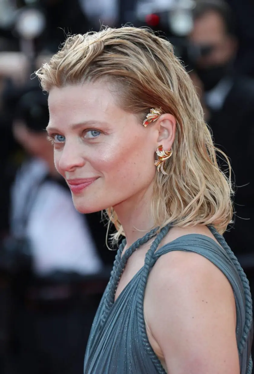 Mélanie Thierry portait la bague Serpent Bohème triple motifs, pavée de diamants, en or jaune, le clip d’oreille Quatre Radiant, en or jaune et pavé de diamants sur or blanc, le clip d’oreille Quatre Grosgrain en or jaune et l’alliance Quatre Radiant Grosgrain en or jaune, pavée de diamants sur or blanc. Elle portait également la boucle d’oreille asymétrique Feuille d’Acanthe en or jaune.