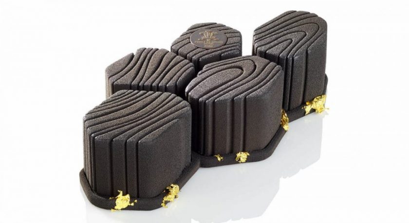 Avec ce concentré d’or noir de la Manufacture Alain Ducasse, Cédric Grolet, chef sucré du palace de la rue de Rivoli, mixe grué de cacao, fleur de sel, biscuit caramel et brisures de chocolat. Pour 6-8 personnes : 80€. dorchestercollection.com
