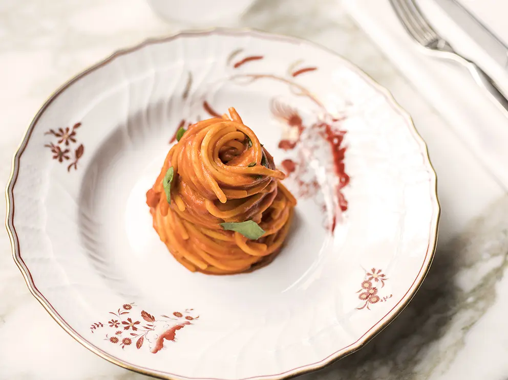 Ici, au Il Ristorante, il distille avec son chef exécutif, Davide Capucchio, une gastronomie allégée et décomplexée. Du risotto, où le beurre a été remplacé par de l’amidon de riz. Des spaghettis pomodoro, mais idem, plus light. Dans la jolie salle aux tables en bois de chêne et d’érable et aux jeux de miroirs, Il faut également goûter ses lasagnes végétales, face au patio qui se transformera en terrasse aux beaux jours. Jolie sélection de vins bio, mais pas que. La verrerie est signée Salviati, l’argenterie, Bvlgari, et la vaisselle en porcelaine, Ginori 1735. Des références !