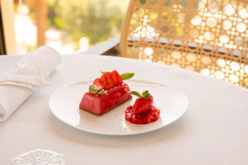 À noter que le même principe s’applique, en concordance avec les soins pointus du SPA Clarins de l’Hôtel de Paris à Saint-Tropez et en collaboration avec le chef Damien Cruchet. Sur le roof top, ou au restaurant du rez-de-chaussée, on savoure une brousse de brebis de la ferme de Catherine Fleury, légèrement fouettée et déposée dans un cube de tuiles croquantes d’avoine et de noisettes.