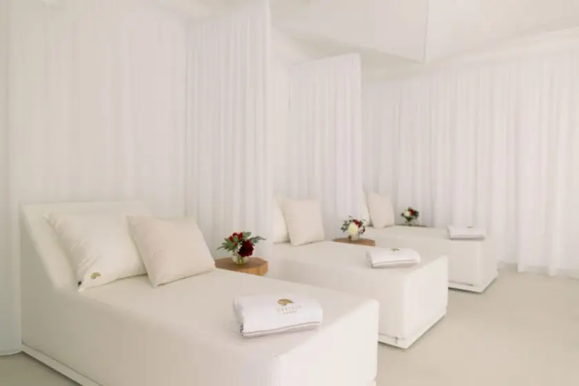 On prend le maquis, direction la Corse du sud pour découvrir le nouveau SPA Clarins, 14e du nom, à l’hôtel Marinca, un 5 étoiles au charme fou. C’est là, dans la baie de Propriano, que la marque ouvre un bel espace de 600 m² pourvu de 5 cabines, dont 2 doubles et d’une piscine intérieure chauffée à 28°. Vue plongeante sur la Méditerranée, douche sensorielle, mur de sel de l’Himalaya dans le sauna, un gazebo pour le yoga et la méditation. Tous les éléments sont réunis pour assurer détente et lâcher-prise. A faire d’emblée, le Soin Relaxant Aroma Visage, un bienfait pour la peau. Et pour le corps, le Massage Equilibre, Tonic ou Relax, aux huiles essentielles de plantes, des produits emblématiques maison.