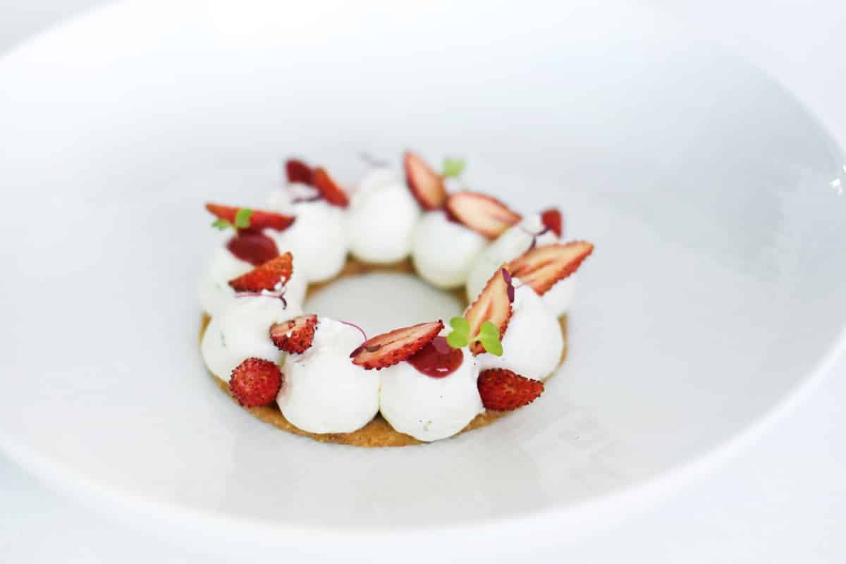 Dessert green de rigueur, avec un fromage brousse de la Bergerie Pastourelle et des fraises de bois. Ce déjeuner hyper light est à déguster sur le rooftop de l’Hôtel de Paris, au bord de la piscine qui offre vue exclusive sur la Méditerranée et sur tout le mythique village varois.