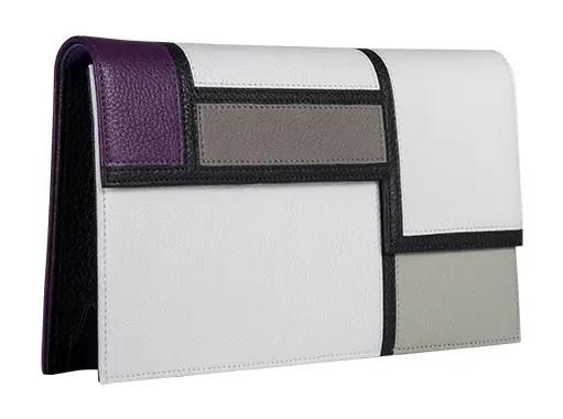 On ne présente plus François-Joseph Graf, architecte, décorateur et grand défenseur des métiers d’art. Et avant tout, esthète. Oui il a été le curateur de grandes expositions et a « habillé » des lieux privés, comme l’appartement parisien de Pierre Bergé, des restaurants tels L’Ambroisie place des Vosges et le Club Marigny du groupe Costes, avec lequel il collabore depuis toujours. Il planche d’ailleurs, en ce moment même, sur le prochain opus de la marque, à Londres. Fort de cette grande culture du beau, il a créé une ligne de sacs. Entendons-nous bien, il s’agit là de maroquinerie d’art. D’artisanat couture réalisé par des maroquinières, celles-là même qui confectionnèrent des sacs pour Renaud Pellegrino, auquel il a racheté les ateliers dans l’Est parisien, précisément à la Villette. Du cousu main, oui. Mais avec une découpe numérique dont il a minutieusement sélectionné les patchs de cuir, pour un assemblage et une marqueterie en toute harmonie.