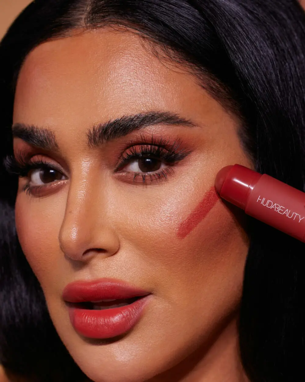 À conjuguer, ou non, avec le nouveau blush en stick Cheeky Tints, waterproof, sans parfum et en cinq nuances. Du Pinky Peach au Baddie Berry, autrement dit du beige rosé au prune en passant par un Proud Pink ou un Red Rebel, rose et rouge soutenus, toutes les carnations y trouvent leur compte. Liquid Matte Huda Beauty : 23€. Cheeky Tints Huda Beauty : 25€. En vente chez Sephora. sephora.fr – hudabeauty.com