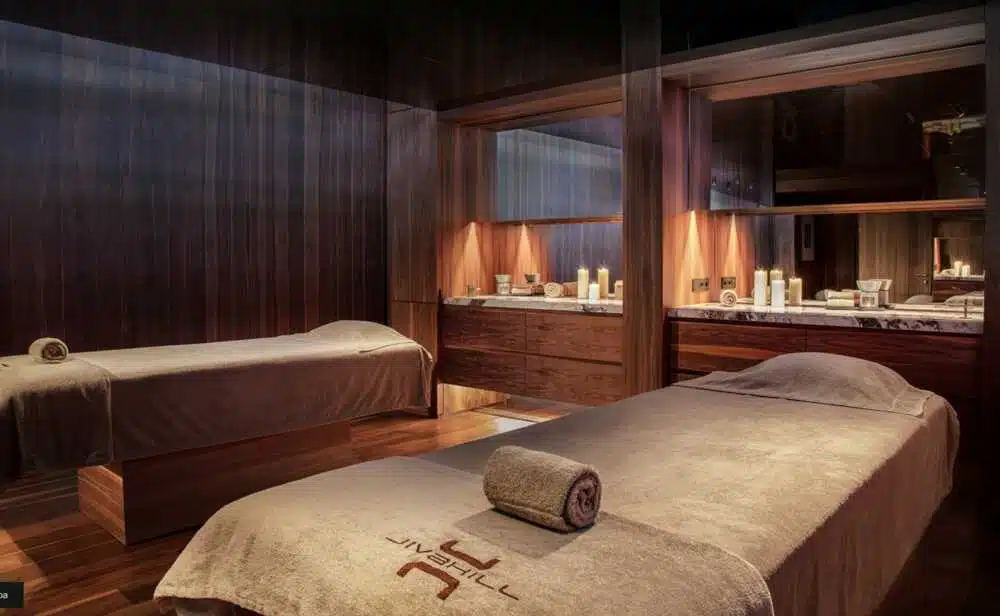Côté loisirs, le Jiva Hill offre une très large palette d’activités. Parmi lesquelles, un parcours de golf 9 trous avec 18 départs, et deux courts de tennis en terre battue. Ainsi qu’une base nautique et deux piscines, l’une extérieure avec jets de massage, l’autre intérieure. Pour les cinéphiles, une salle de cinéma est privatisable. Et bien sûr, un passage oblige au Spa « In&Outdoor », où jacuzzi, sauna et hammam forment la trilogie du bien-être. La carte des soins Sothys complète le tableau de cette douce parenthèse. Mention inoubliable !