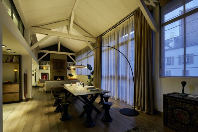 A l’étage, on accède à un appartement contemporain de 120 m², avec cheminée, coin salon et une table d’hôtes où l’on peut organiser un diner privé, mais qui sert également de table de travail au maître de céans, une kitchenette hyper équipée et encore… un bac à shampoing. Mais non, ce n’est pas un salon de coiffure, même si John y recevra sans doute quelques clientes VIP. Il est chez lui ! Location sur demande. www.fortyonestudio.com
