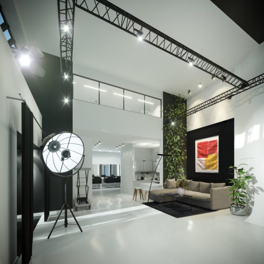 C’est sur 2 niveaux à la déco contemporaine (signée John !), ré-agencés par l’architecte Alain Dominique Gallizia, et avec des aménagements techniques pointus (dont le son Bang&Olufsen), que prend place un studio photos pour les shooting mode ou les spots publicitaires. De plus, John Nollet dispose d’un laboratoire de recherches pour coupes et textures, de deux bacs à shampoing (Cindarella, la Rolls du genre) et de 4 postes de maquillage afin de préparer les séances. Un lieu formidablement mis en lumière, avec la complicité de la marque italienne de luminaires Occhio, dont les lampes et lampadaires varient en teintes et en intensité à loisir.