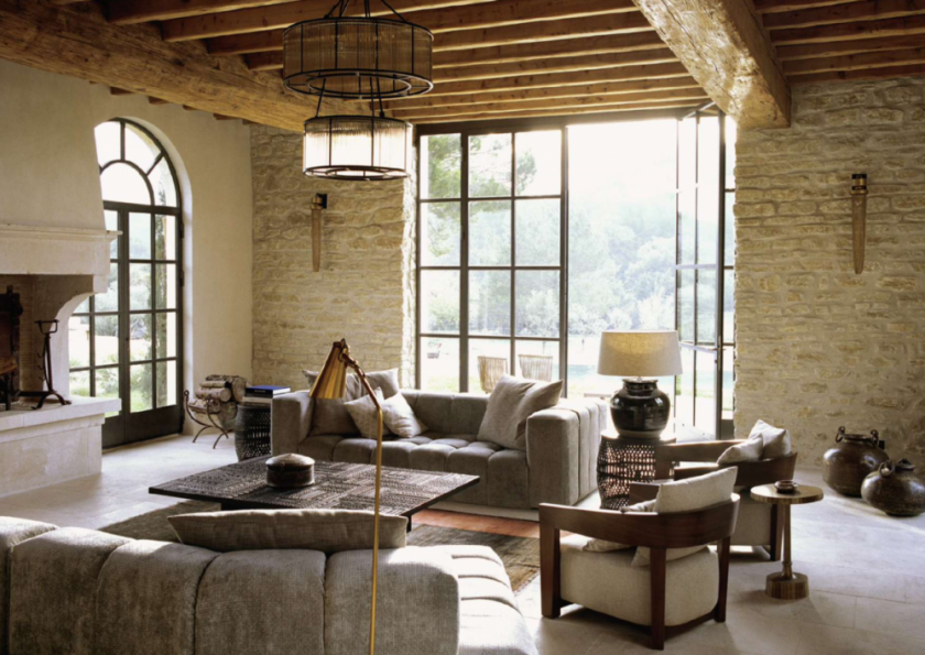 A 30 km de la gare d’Avignon, et une encablure des cultissimes villages de Maussane les Alpilles et des Baux de Provence, se dresse cette ancienne bastide du 18e siècle, réaménagée par Alain Meylan et Liliana Atilova (Cabinet K Architectes), des amoureux de la région. Comme au Mas de Chabran voisin, ils ont su redonner vie à la Bastide de Fléchon tout en préservant l’âme et le charme indicible du lieu. Cinq chambres, une dominante de bois naturel, des parquets en chêne foncé, de la pierre des Baux, des canapés de velours capitonnés, une grande cheminée et une cuisine avec table en travertin et meubles à corniche apportent une douce atmosphère. Baignoires vasques, miroirs sertis de filaments de fibre de coco et grandes arches vitrées, complètent le tableau. A louer à la semaine en totalité, en famille ou entre amis. 8 000€ la semaine en basse saison, et à partir de 13 000€ la semaine en haute saison.