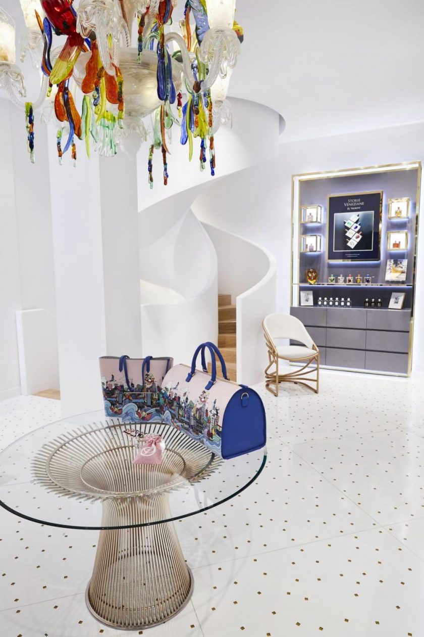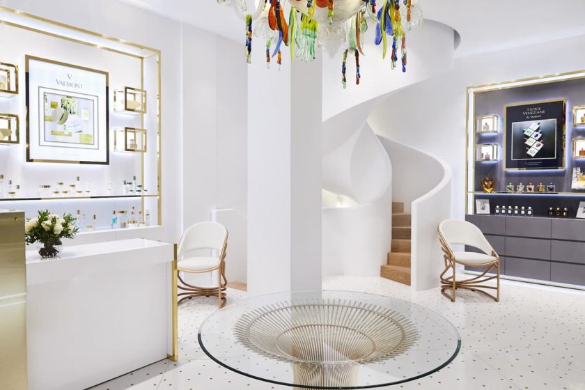 Une référence qui rappelle la passion du PDG fondateur de Valmont, Didier Guillon, envers la Sérénissime, où il a créé sa fondation pour l’art contemporain au Palazzo Bonvicini. A Paris, son espace-boutique de 52 m² est situé à l’orée de la Place Vendôme. On y découvre des produits aux formules initiées par Sophie Vann-Guillon, avec en ligne de mire la star des anti-âges, le Renewing Pack, et la ligne de soins Elixir des Glaciers. Sans oublier la gamme de parfums Storie Veneziane, dont le nouvel opus, divine alchimie de rhum, de chantilly et de vanille, répond au doux nom de Mica d’Oro.
