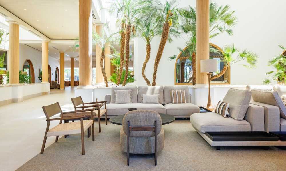 Les espaces publics affichent une sobriété élégante et des matières nobles aux touches méditerranéennes. Ils invitent à savourer le spectacle du soleil couchant, face aux jardins classés, aux trois piscines extérieures et au jacuzzi géant. Ses chambres et suites sont baignées de lumière et dotées d’une literie premium. Les salles de bains sont en marbre et les équipements permettent de rester connectés, avec des balcons et des terrasses panoramiques aux tailles généreuses.