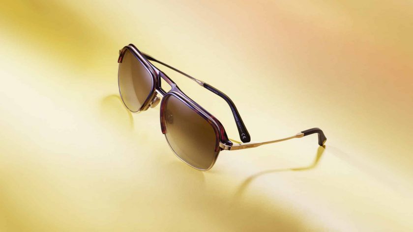 Montures métalliques carrées en or rose scintillant, parées d’un cerclage cannelé et rehaussé du motif vagues de la Seamaster, Aviateur pour homme, doté d’une structure résolument italienne avec des inserts de motifs d’écailles foncées ou inspiration vintage rond unisexe avec verres fumés et monture en acétate et métal, chaque modèle se fait désirable. Et reconnaissable grâce au logo qui rappelle la couronne de remontoir Omega sur l’extrémité des branches. De 450 € à 630 €. omegawatches.com