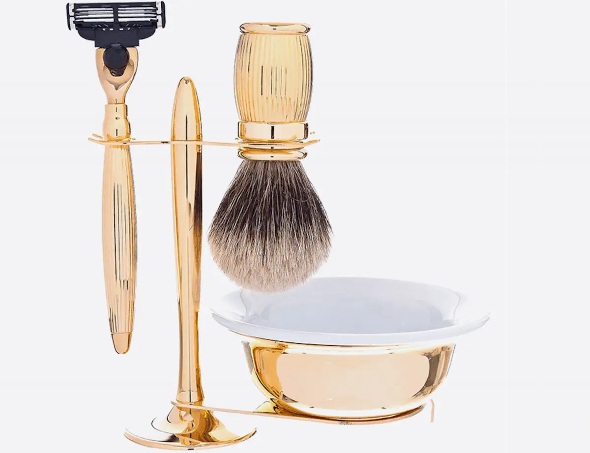 Plisson 1808 estime les hommes, car ils méritent le meilleur. La plus ancienne manufacture de blaireaux de rasage au monde leur propose donc un luxueux set de 4 pièces qui exprime puissance et virilité, au service de la beauté masculine. Ce dernier rassemble un rasoir, un blaireau assorti, un serviteur ainsi qu’un bol à raser. De plus, les accessoires en laiton massif sont dotés d’une finition à l’or fin 24 carats. Oui, l’homme moderne prend soin de lui. Oui, vous le méritez. Et oui, ce cadeau à se faire, ou à se faire offrir, pourra trôner fièrement dans votre salle de bains. 880€. plisson1808.com