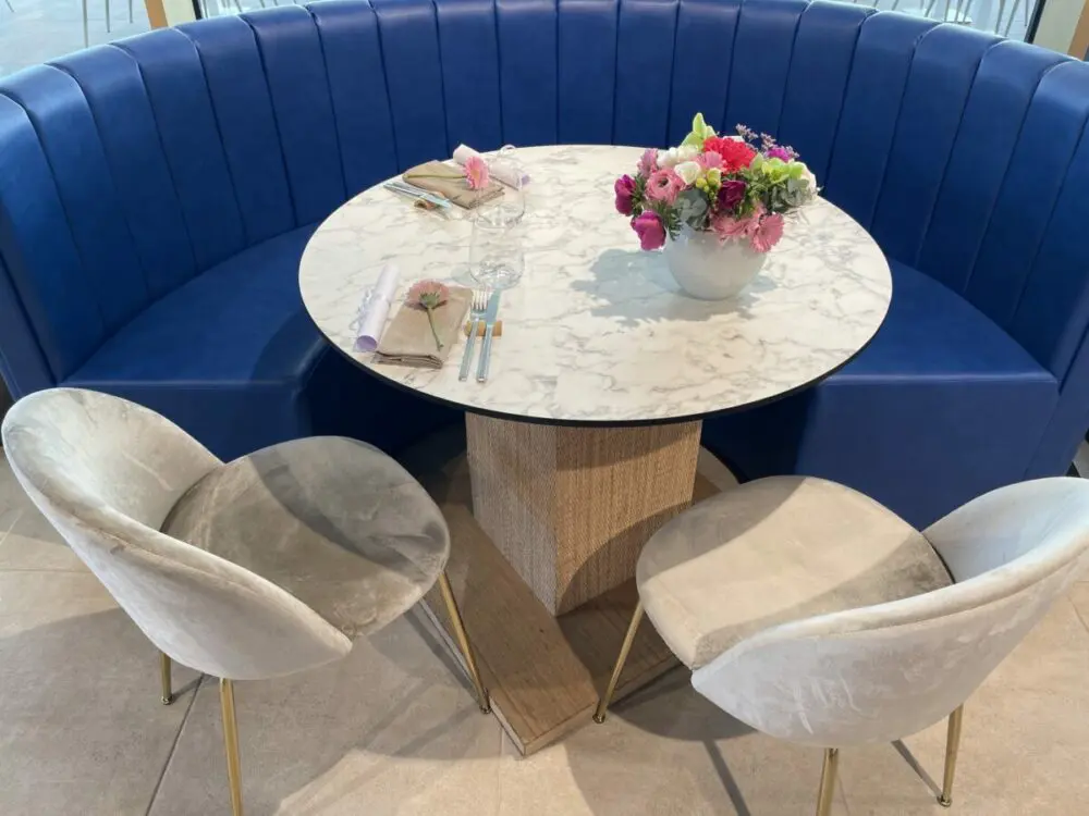 Pour faire la pause entre deux achats, direction les tables du restaurant by adHoc, dont l’immense terrasse offre une panorama bluffant sur la Méditerranée. Sous la houlette du chef Matteo Riccitelli, passé par le Cipriani de Londres et le Métropole de Monaco, les gourmets fondent de plaisir devant les assiettes graphiques dédiées aux saveurs du terroir ligurien. La carte, qui change régulièrement au fil des saisons, fait la part belle au cabillaud à la crème de pommes de terre mendicata à l’oignon rouge caramélisé, au carpaccio de crevettes à la fondue de parmesan, à la lotte braisée aux artichauts et au millefeuilles à l’orange et aux amandes sur une crème anglaise à s’en lécher les doigts. Un voyage gourmand qui complète comme il se doit une expérience exceptionnelle pour renouveler son dressing. themall.it/fr/